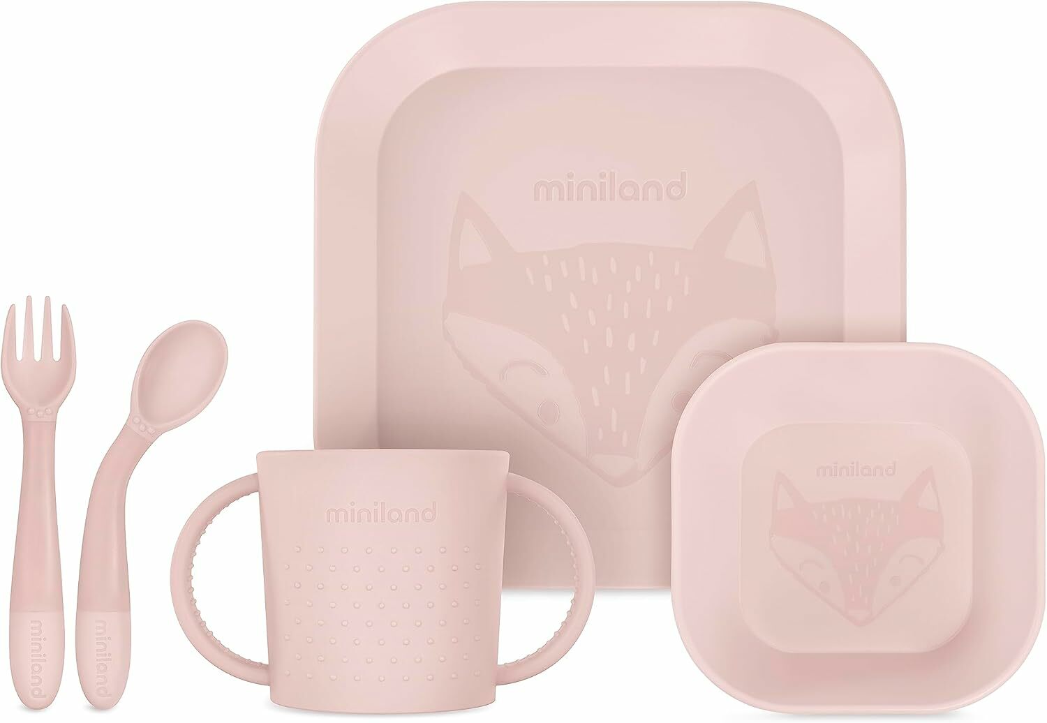 Miniland Dolce 5-dielny set na jedenie pre deti, štvorcový, ružový