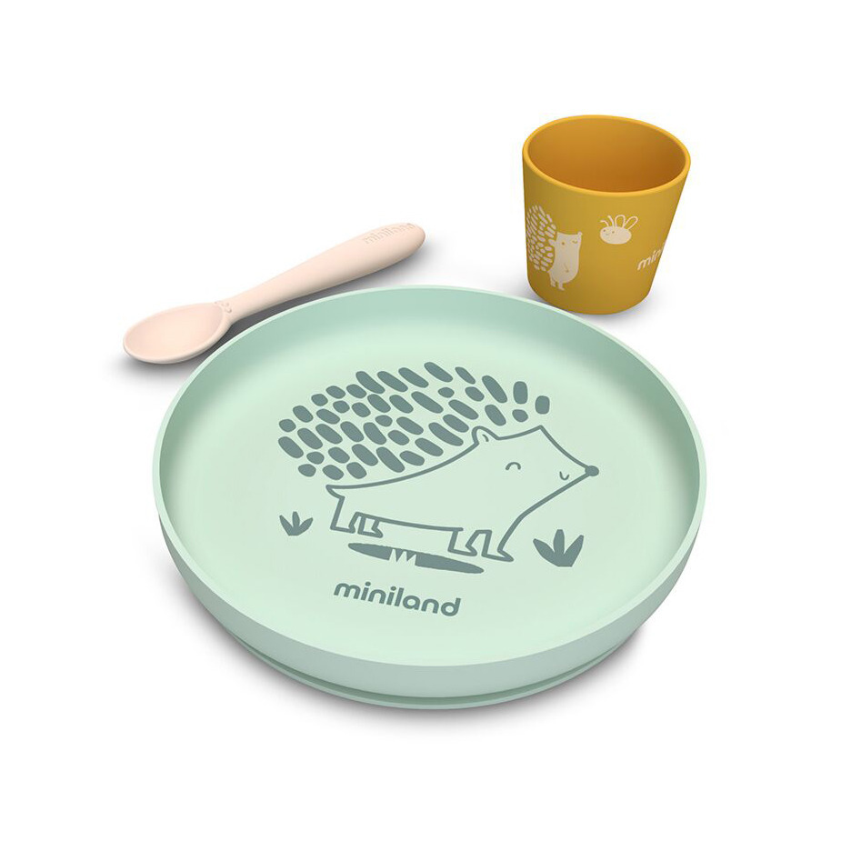 Miniland Set na jedenie Jež je navrhnutý pre malé deti, ktoré sa učia samostatne jesť. Táto súprava, vyrobená z kvalitných a odolných materiálov v Španielsku, poskytuje komfort a bezpečnosť pri každom jedle. Roztomilý motív ježka na tanieriku a hrnčeku robí z učenia sa jesť zábavu.