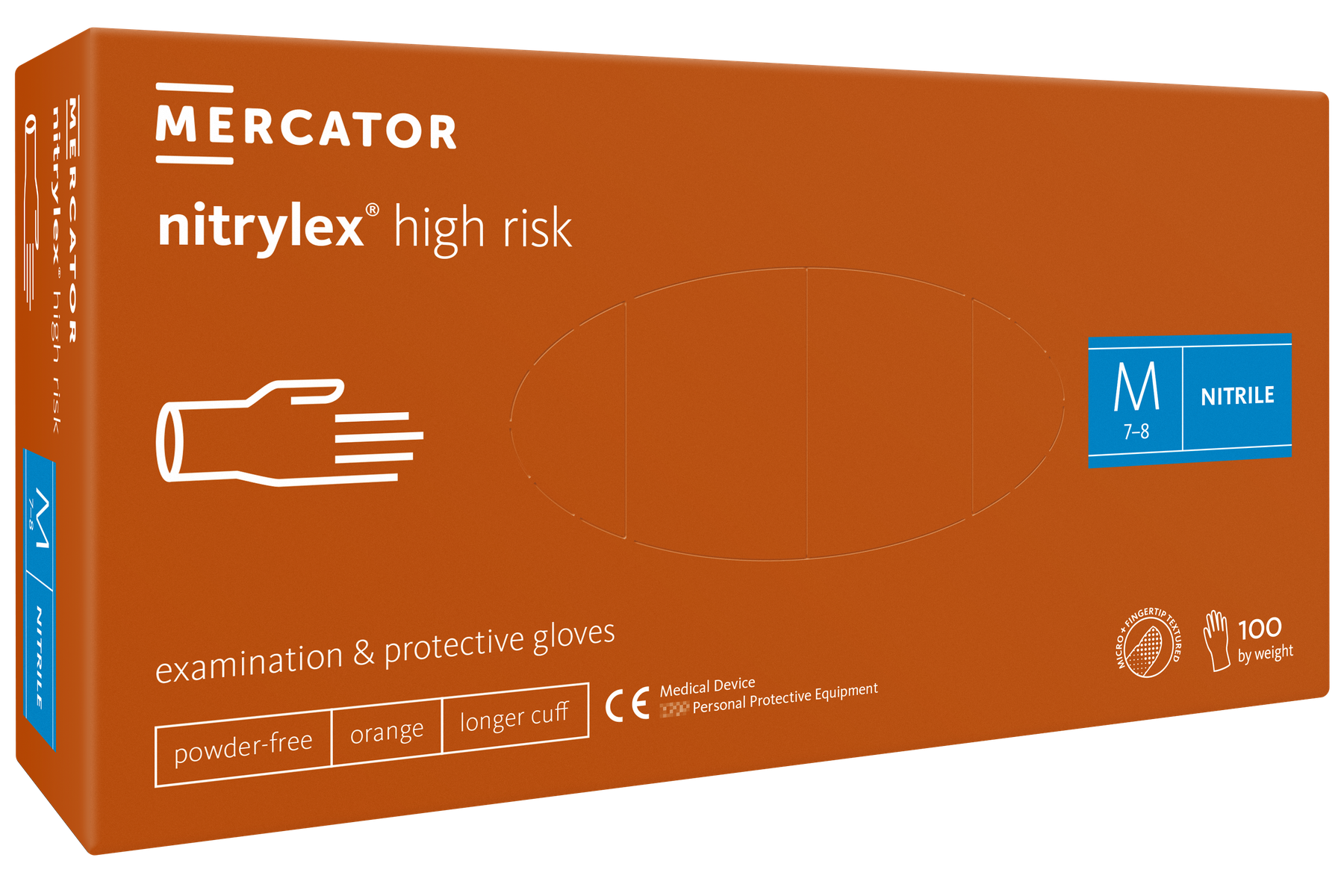 nitrylex high risk – ide o rukavice, ktoré poskytujú ochranu pred vírusmi, baktériami a plesňami. Pevnosť zaručuje hrubšia stena, – ktorá však neznižuje hmatovú citlivosť. Pri nosení rukavíc nitrylex high risk môžete bez obáv vykonávať aj tie najpresnejšie úlohy so zárukou vynikajúcej úrovne hmatovej citlivosti.