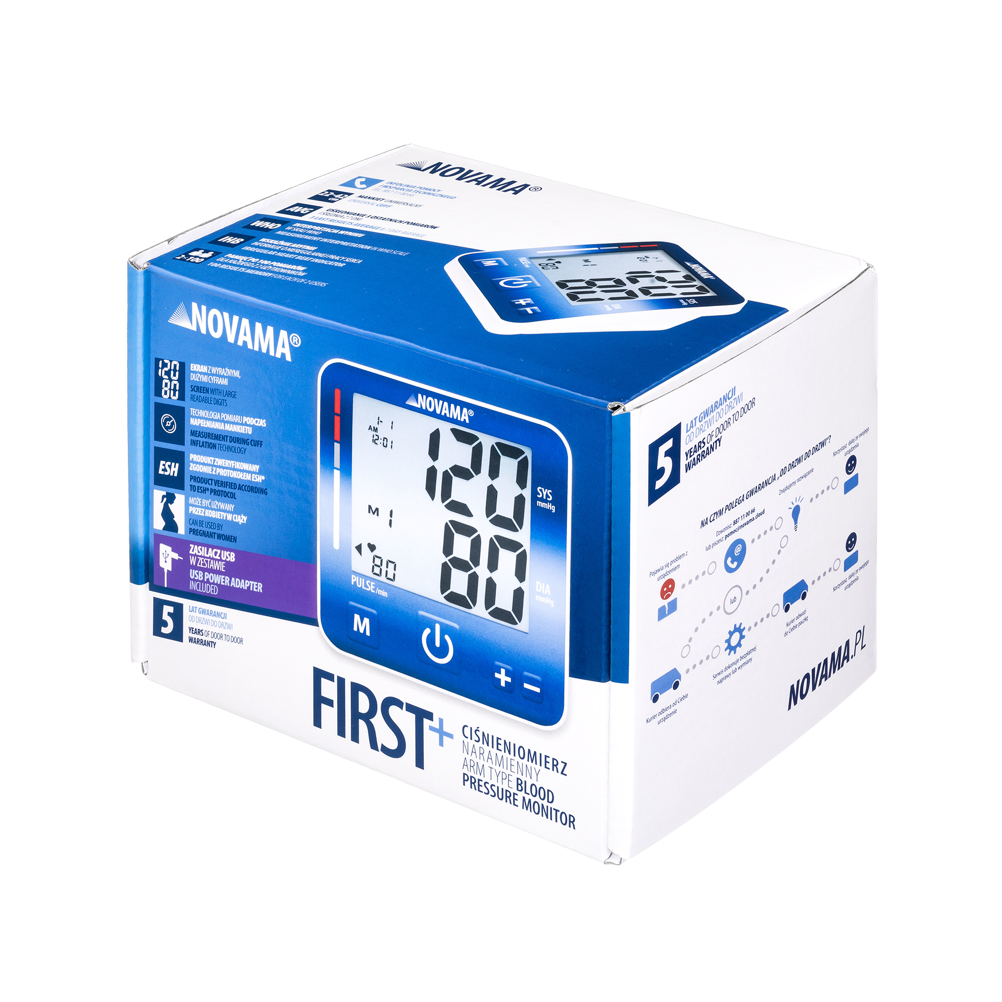 Predstavujeme NOVAMA FIRST+ je univerzálny ramenný tlakomer, ktorý je novinkou v ponuke značky NOVAMA a bol vyrobený ako reakcia na univerzálne potreby rôznorodých používateľov. S vyhradeným certifikovaným napájacím zdrojom bol vyvinutý s ohľadom na najdôležitejšie požiadavky pri výbere tlakomeru pre ľudí rôzneho veku. Je to najlepšia voľba pre zákazníkov, ktorí oceňujú optimálny pomer kvality a ceny.