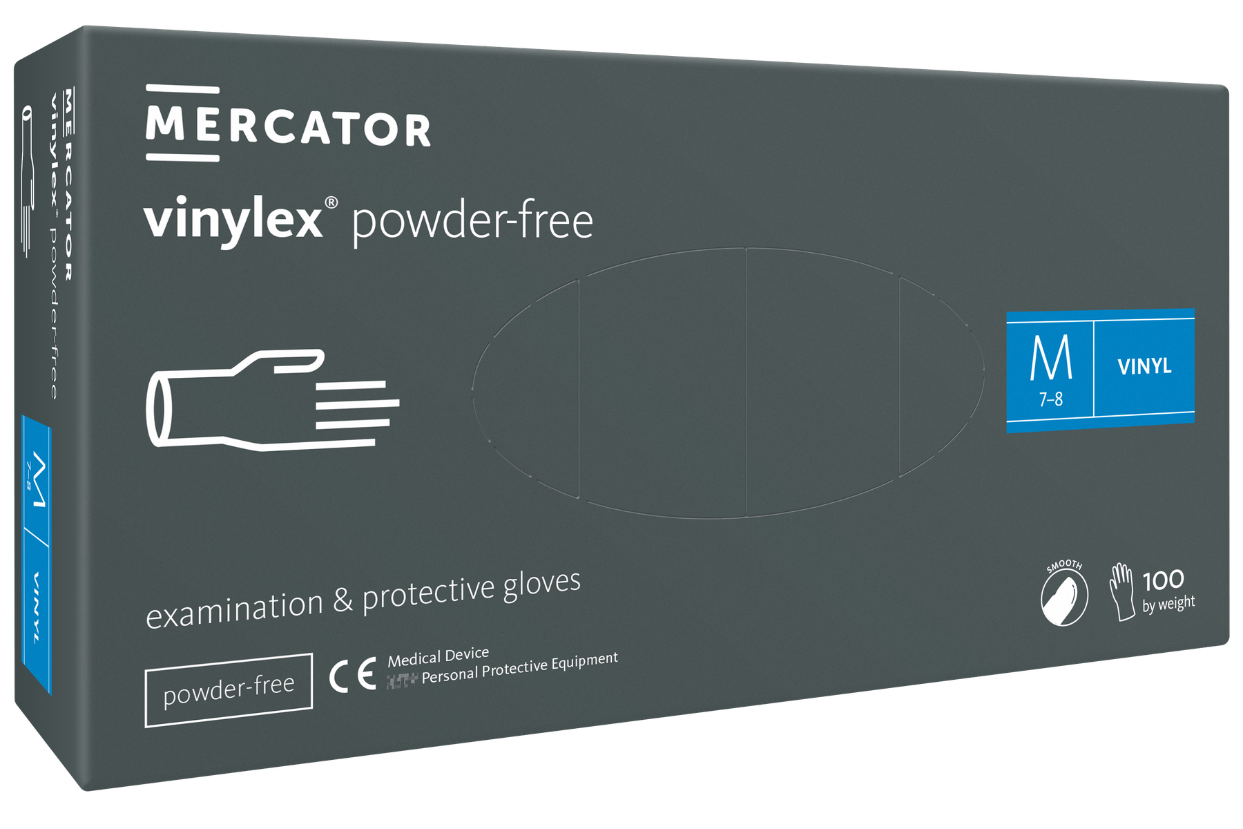 Vinylové rukavice vinylex powder-free 100 ks – vinylové diagnostické rukavice. Najuniverzálnejšie vinylové rukavice v ponuke firmy Mercator. Bez obsahu púdru, znižujú výskyt alergií a vysušenia pokožky rúk. vinylex powder-free – vynikajúca kvalita za nízku cenu. Jemný povrch zaručuje spoľahlivé uchopenie a výnimočnú hmatovú citlivosť.